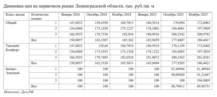 В ноябре 2025 года в Петербурге по сравнению с октябрем цены на первичном рынке выросли на 1,9%, в Ленобласти — на 1,4%. При этом в октябре месячный прирост составил лишь 0,6% и 0,7% соответственно. В целом по России динамика похожая: около 1,77% в ноябре и 1,16% в октябре. Таковы данные мониторинга цен Дом.РФ.
