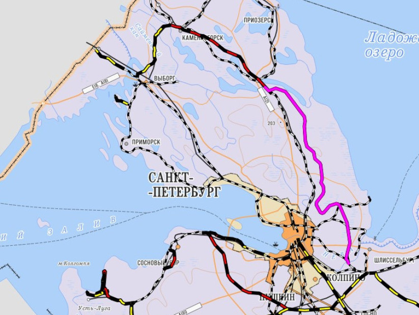 Трассировка этой железной дороги в районе Всеволожска напоминает предполагаемую трассу КАД-2. Вероятно, предполагается, что они пройдут рядом друг с другом. Однако КАД-2 после общественной дискуссии проложена мимо озер в районе Токсово. Железная же дорога протянется на север рядом с ними.